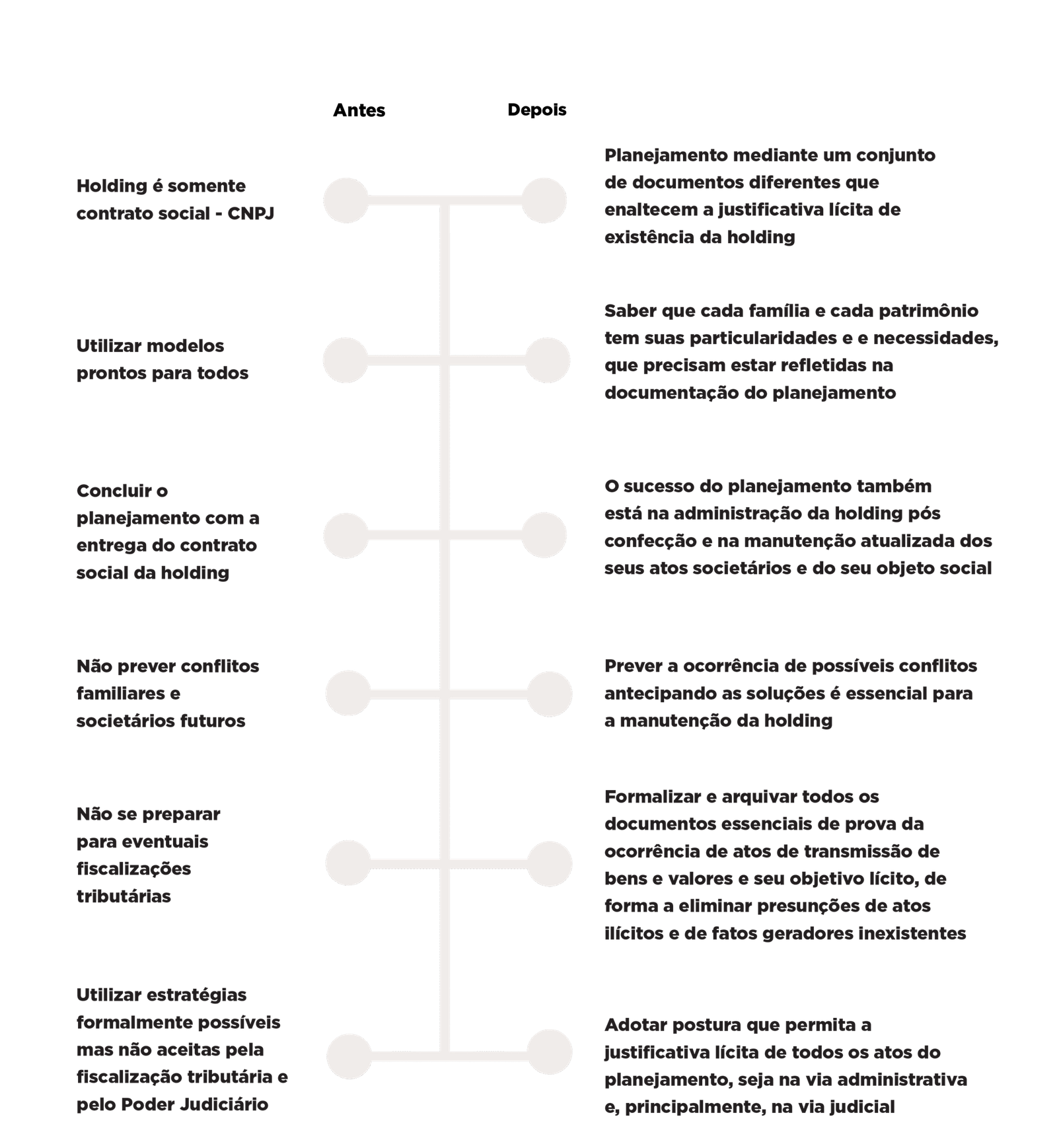 Além disso, erros comuns na constituição de uma holding familiar acontecem o tempo todo e estão gerando sérios prejuízos ao patrimônio familiar. Dentre esses erros encontram-se: a constituição de holding somente via contrato social, a utilização somente de limitadas como forma societária, a inclusão de menores de idade sem a preparação dos atos societários, a falta de atas para integralização de imóveis em realização de capital social, a absoluta ausência de um plano de negócios, a falta de comprovação dos princípios e valores da família, dentre outros.